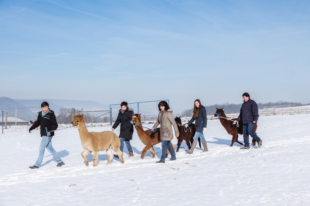 Auf unserer Farm haben sie die Möglichkeit auf Anfrage einen Spaziergang mit diesen außergewöhnlichen Tieren zu unternehmen. Nachdem sie unsere Alpakas auf unserem Hof begrüßt und eine gewisse Freundschaft zu den Tieren aufgebaut haben geht es auch schon los. Auf der circa 2 Stunden dauernden Wanderung entlang der Wiesen und Wälder des Naturschutzgebietes „Auewäldchen (Borscher Aue)“ lernen sie die friedliebenden aus Südamerika stammenden Tiere näher kennen und lieben.